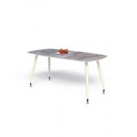 Chất liệu: Bàn ăn chân sắt ống Ø50 tóp côn, liên kết với chân tăng chỉnh mạ Niken bằng khớp nối nhôm hợp kim cao 5cm. Khung đỡ mặt bàn bằng thép hộp 25x50, sơn đen sần hoặc kem. Mặt đá ceramic dày 12mm.