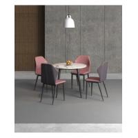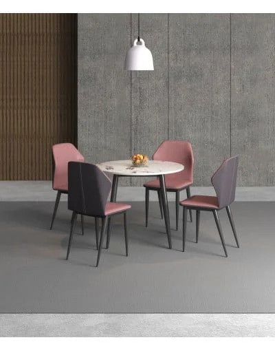 Chất liệu: Bàn ăn mặt tròn, chân làm từ chân ống Ø 50 tóp côn. Khung đỡ mặt bàn bằng thép hộp 25x50, sơn đen sần hoặc kem. Mặt bàn bằng đá ceramic dày 12mm. Chỉ có màu trắng vân.