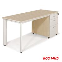 - Bàn làm việc BCO14H5 là loại bàn đơn mặt hình chữ nhật, chân ống oovan 30 x 70, hộc liền (hộc gỗ mặt sắt sơn tĩnh điện)