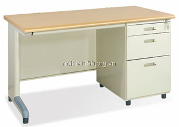 Bàn làm việc 190 cao cấp dùng cho văn phòng hiện đại, mặt bàn gỗ melamine hoặc Laminate chống nước, chống trầy xước, chân bàn bằng thép sơn tĩnh điện, hộc sắt 3 ngăn kéo tiện dụng, yếm sắt chắc chắn.