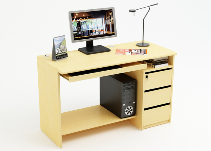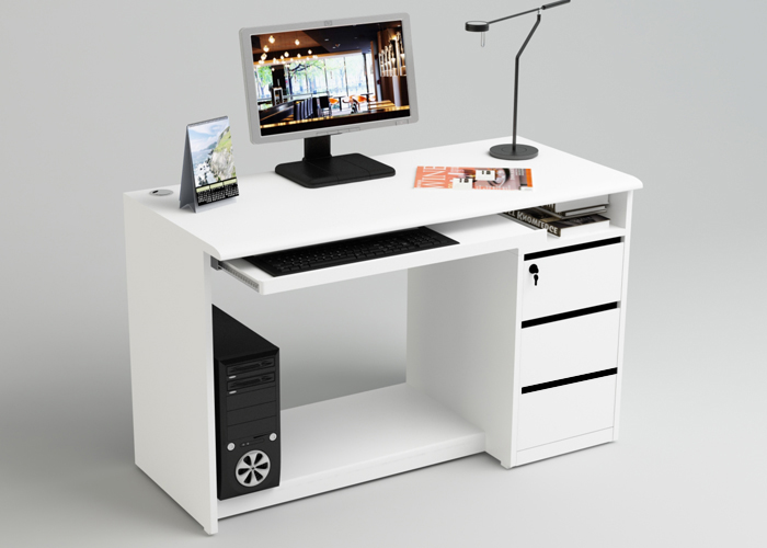 - Bàn có khay bàn phím treo, 1 bên có 2 ngăn kéo tay nắm âm và có khóa dàn.
