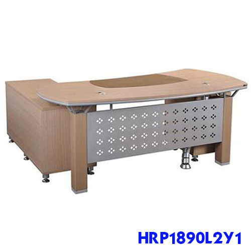 Bàn làm việc lãnh đạo HRP1890L2Y1 với thiết kế mặt bàn lượn cong phần trước và 2 đầu, chiếc bàn mang phong cách cá tính mạnh mẽ, được làm từ vật liệu gỗ melamine chống xước, chống cong vênh. Yếm bàn bằng tôn sơn tĩnh điện đột lỗ hình hoa văn tạo sự thông thoáng cách điệu.