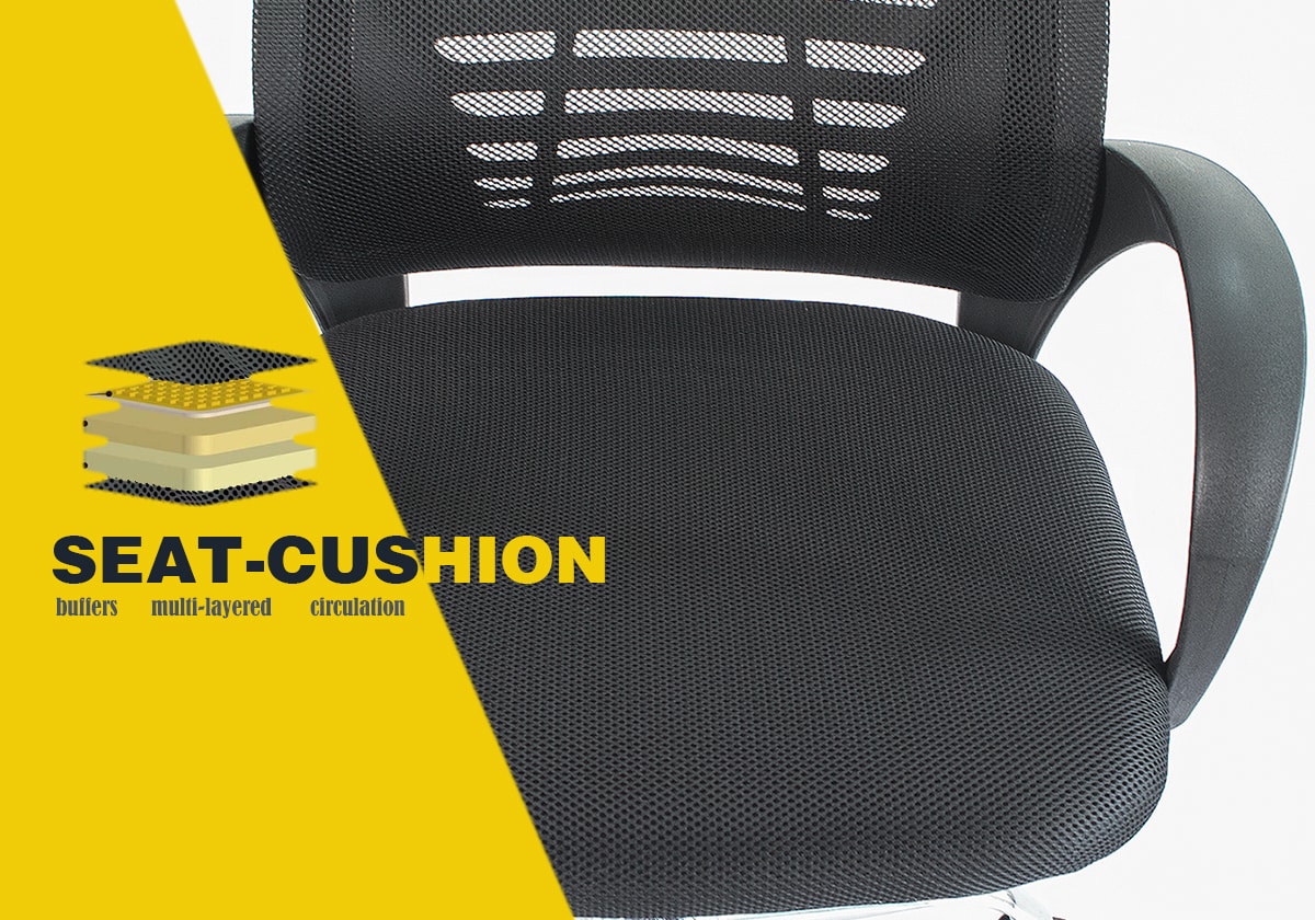 Đệm ngồi ghế được làm từ mút bông tự nhiên cao cấp có độ đàn hồi cao, không bị xẹp lún, phần bên ngoài được bọc lớp lưới chuyên dụng thoáng khí không gây tích nhiệt trong quá trình sử dụng.