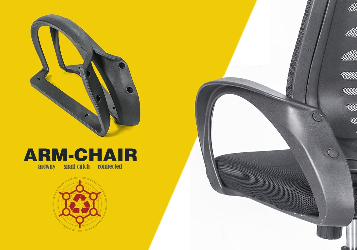 Tay ghế bằng nhựa PP siêu bền được thiết kế theo kiểu vòng cung hướng về phía trước, liên kết giữa phần đệm ngồi và tựa lưng để tạo thành một khối thống nhất vững chắc.
