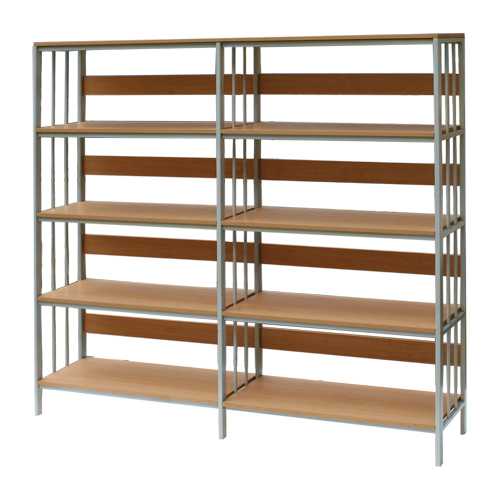 Giá sách thư viện được làm bằng khung thép cao cấp Hòa Phát bao gồm nhiều thanh và song ghép lại với nhau, các đợt để sách báo, tài liệu bằng gỗ Melamine màu vàng vân gỗ.