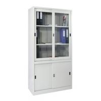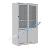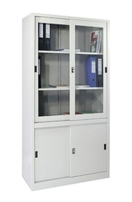 - Tủ sắt sơn tĩnh điện 2 khoang, khoang trên có 2 đợt di động khung cánh kính lùa