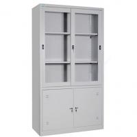 - Tủ sắt sơn tĩnh điện 2 khoang, khoang trên có 2 đợt di động khung cánh kính lùa