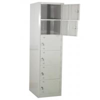 Kiểu dáng: Tủ sắt cánh mở, 6 khoang, mỗi khoang có khóa và 1 tai móc khóa