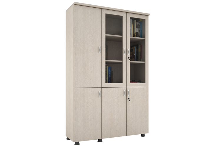 - Phần trên tủ có 3 ngăn, 03 cánh kính, 02 cánh có khóa và 01 cánh gỗ bên trái không có khóa