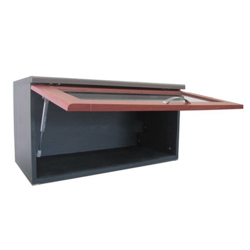 - Tủ có cánh kính lật lên nhờ 2 ống piston chống
