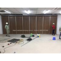 Vách ngăn di động gỗ melamine hệ dày 65mm, bề mặt gỗ melamine chống xước, khung nhôm định hình cao cấp ngăn chia không gian phòng họp thành 2 phòng nhỏ một cách cơ động, có khả năng xếp vách vào 2 bên tường để tạo thành phòng lớn như ban đầu.