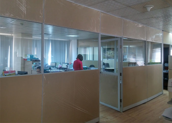 Vách ngăn chia phòng nỉ kết hợp phần kính trắng giữa nhằm mục đích chia phòng to thành các phòng ban nhỏ tiết kiệm chi phí, tạo ra các phòng ban làm việc độc lập trong một không gian rộng lớn.